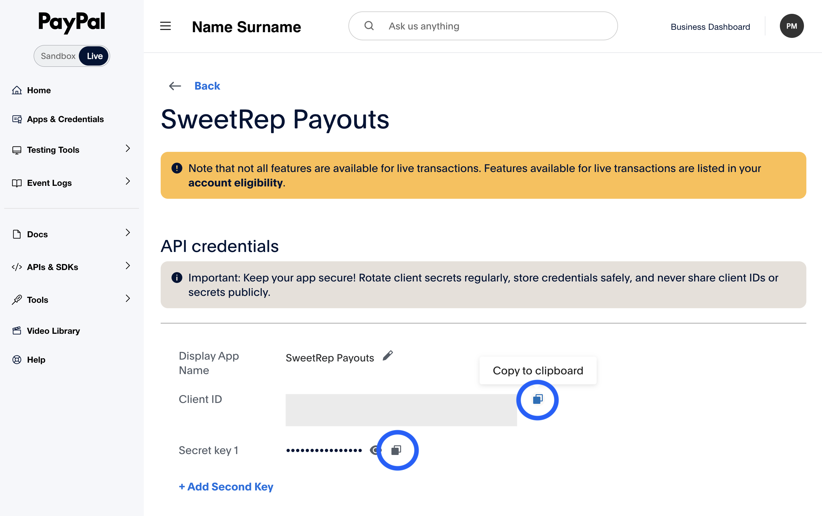 Getting your PayPal API keys
